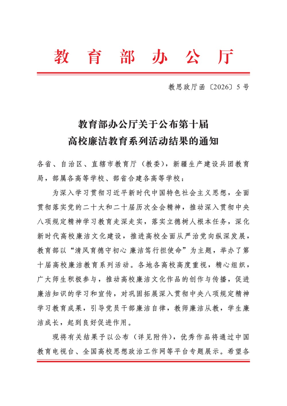 我校作品入选教育部第十届高校廉洁教育系列活动优秀名单