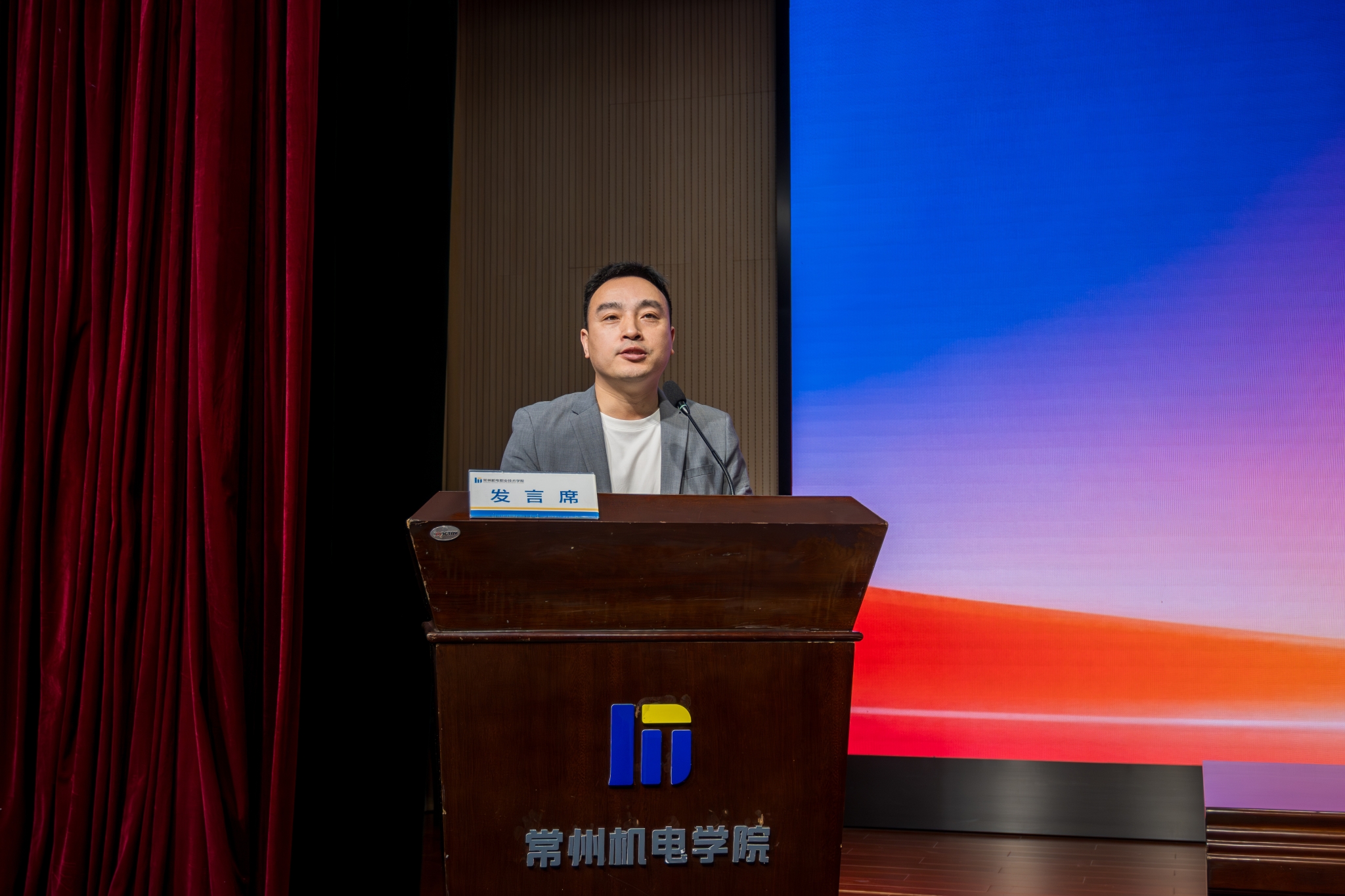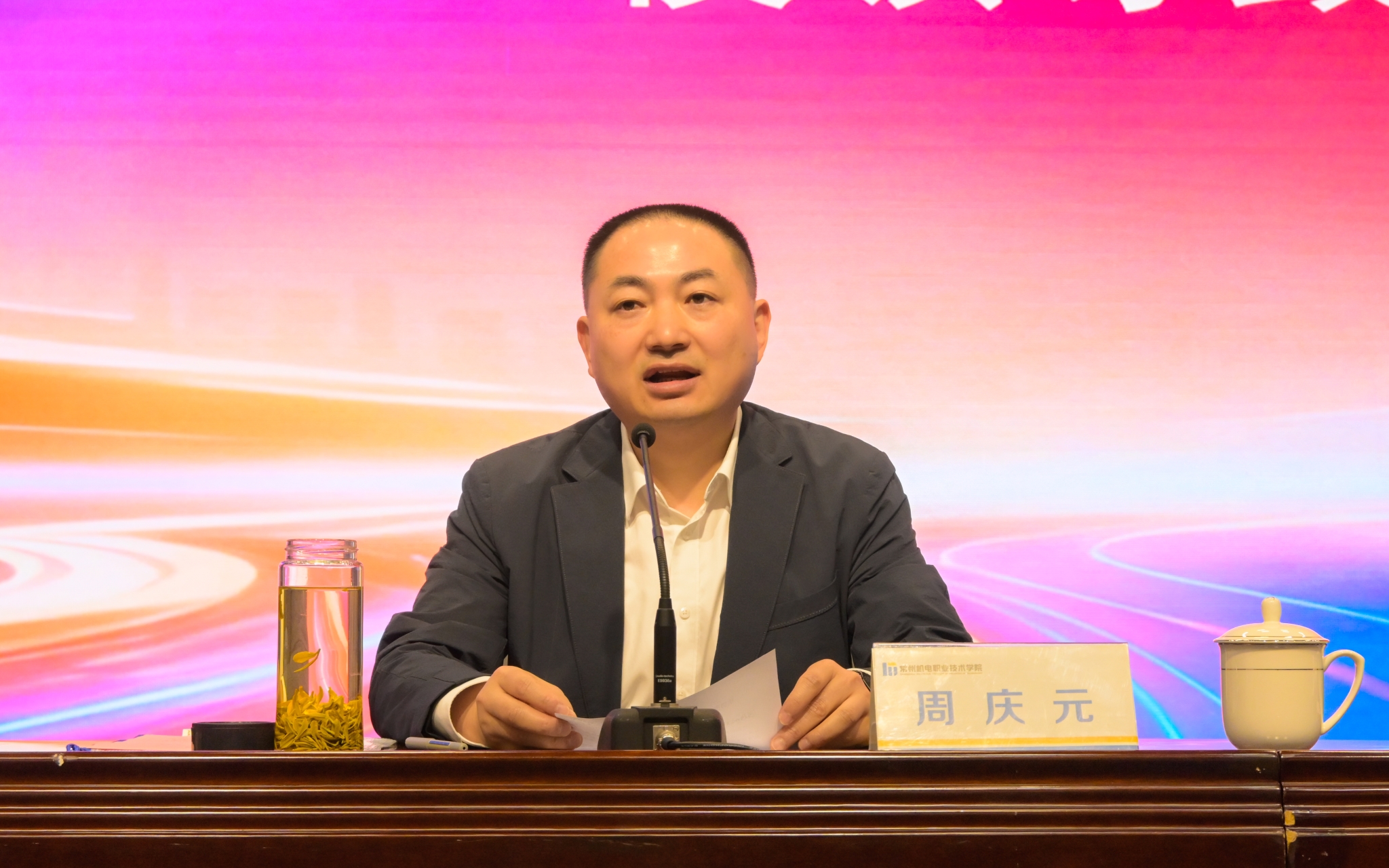 典礼在庄严的国歌声中正式拉开序幕。周庆元致欢迎辞。他向全体新生表示祝贺,并介绍了学校的办学成果及高等学历继续教育在产教融合、服务地方产业等方面取得的成效,他勉励新生构建“终身成长”的学习生态,争做新时代的“思考者、践行者、开拓者”,并提出三点期望:一是坚守初心,以终身学习之姿应对时代变革,破解工学矛盾、主动求学;二是知行合一,深化“学历+技能”双向赋能,成长为适配产业的复合型技术技能人才;三是传承“常机电精神”,将个人成长融入产业振兴,实现人生价值。