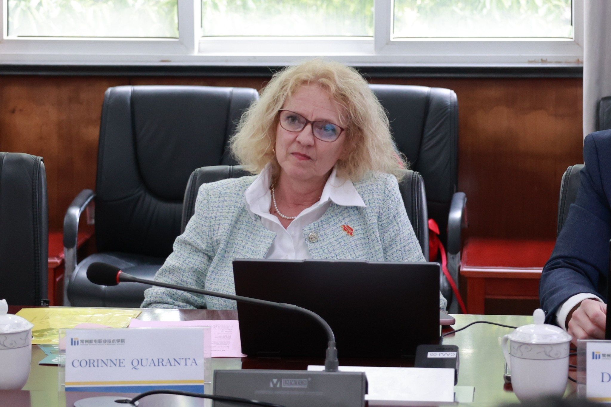 科琳·夸兰塔介绍了素有“钟表之乡”美誉的纳沙泰尔州,重点展示了侏罗山培训学校在机械制造、精密制造与检测、工业设计等领域的专业优势。她表达了与我校开展教师交流交换项目的强烈意愿,并对学校长期以来为瑞士学生在华学习实习提供的周到支持表示衷心感谢。