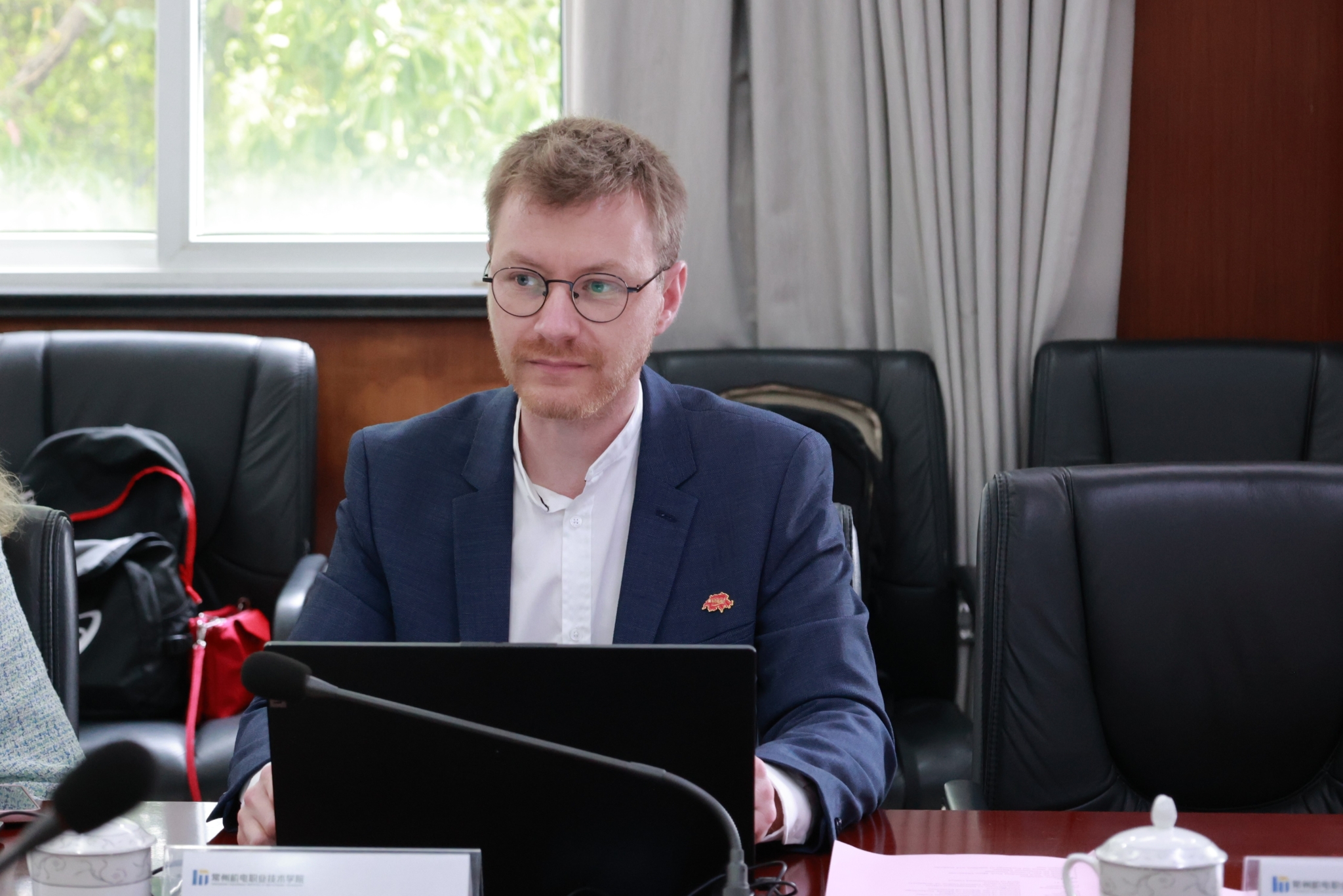 周庆元代表学校对瑞士嘉宾表示热烈欢迎。他简要介绍了常州经济社会发展的蓬勃态势,以及我校以工科见长的办学特色,并特别提及中瑞(常州)国际产业创新园的合作潜力。他指出,去年中瑞两国共同庆祝建交75周年,各领域交流合作成果丰硕;今年3月,教育部部长怀进鹏访问瑞士并会晤联邦主席帕姆兰,进一步增强了学校与瑞士职业教育深化合作的信心。