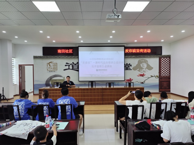 江苏博爱星律师事务所杨婷、江涛律师受邀为社区居民开展了反诈安全教育讲座。江涛律师针对暑假期间网络诈骗频发的现象,讲解了电信诈骗、冒充公检法工作人员诈骗、虚假网络链接诈骗、网络游戏诈骗等真实案例,更好地帮助家长和孩子们了解各种常见的诈骗方式。他还提醒大家如遇到索要银行卡账号密码、手机验证码等情形,主动查询国家反诈中心APP,亦可向公安机关咨询,务必三思而后行,谨防上当受骗。实践团成员开展了防溺水安全教育,队员们播放了未成年人防溺水相关视频,并结合学生溺水的真实案例给小朋友们讲解了预防溺水的措施、落水时如何自救以及溺水者上岸后如何急救等多方面的知识,加强了孩子们的防溺水意识,更好地掌握了防溺水方法。