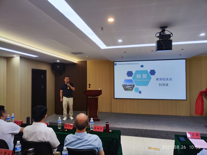 在全体与会人员的共同见证下,曹根基为宿迁校友会授牌。丁振中向宿迁校友代表发放了学校60周年校庆邀请函,并许下金秋重聚机电的约定。南京校友会会长刘海波代表兄弟校友会向宿迁校友会的成立表示祝贺。