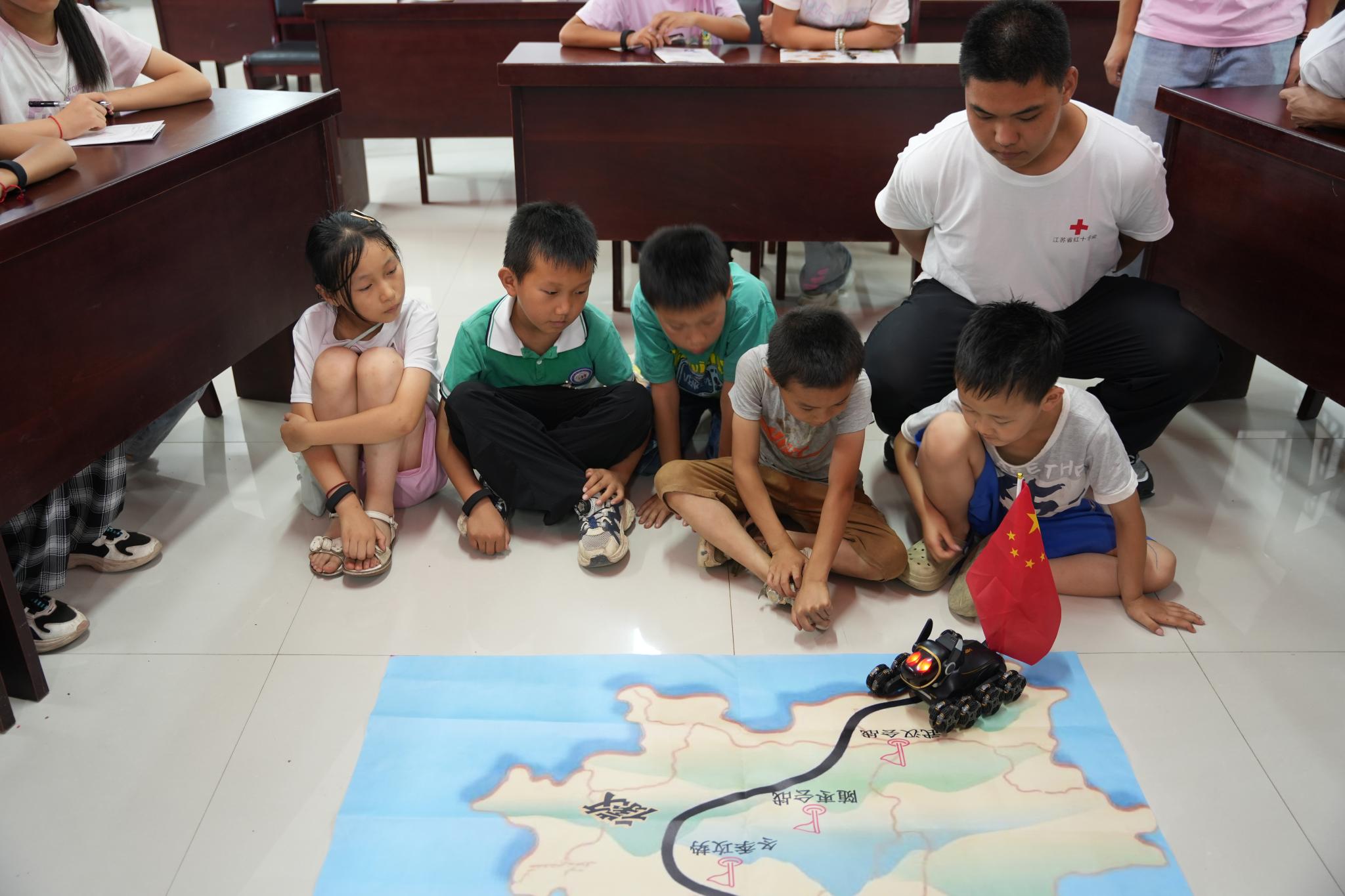 此外,团队为孩子们发放可实时监测心率、步数的智能手环,让健康管理有“数”可依,培养科学健康意识。结合革命老区特色,团队创新红色教育:AI寻迹小车精准复现安徽新四军转移路线,配合动态PPT同步展现历史事件,让红色记忆在科技赋能中展“新颜”,于互动体验中厚植家国情怀。