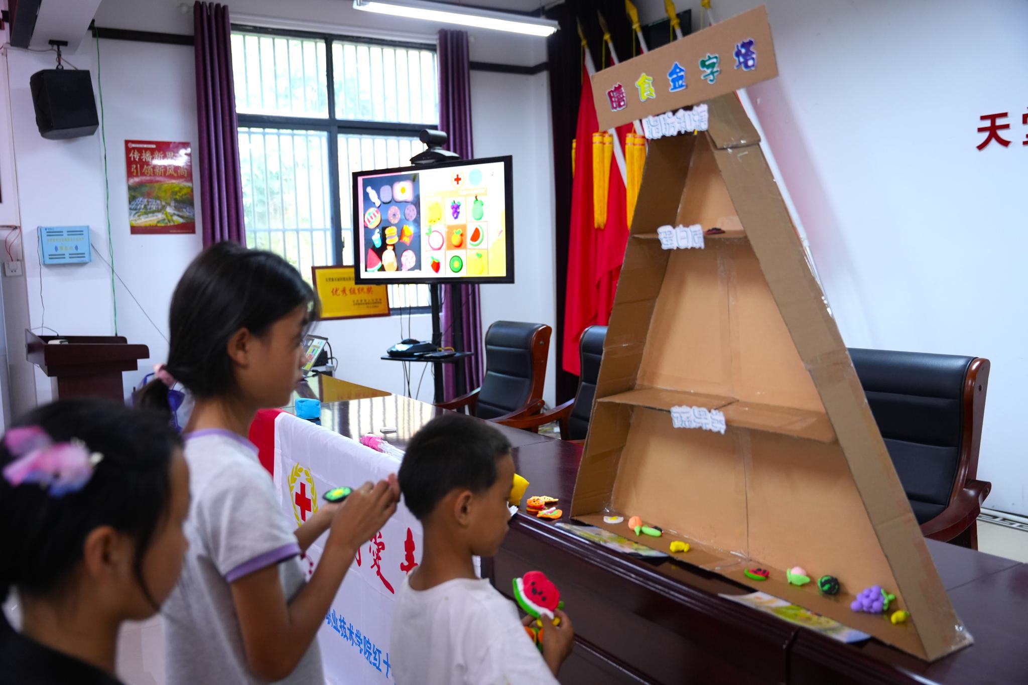 志愿者为每个孩子建立数字健康档案,结合身高、体重等数据,通过AI算法生成个性化成长建议;开设“健康科学小课堂”,讲解膳食纤维与卡路里知识,孩子们在膳食金字塔手工课上用黏土搭建模型、用五谷拼贴“健康画”,在动手实践中理解均衡饮食的重要性。