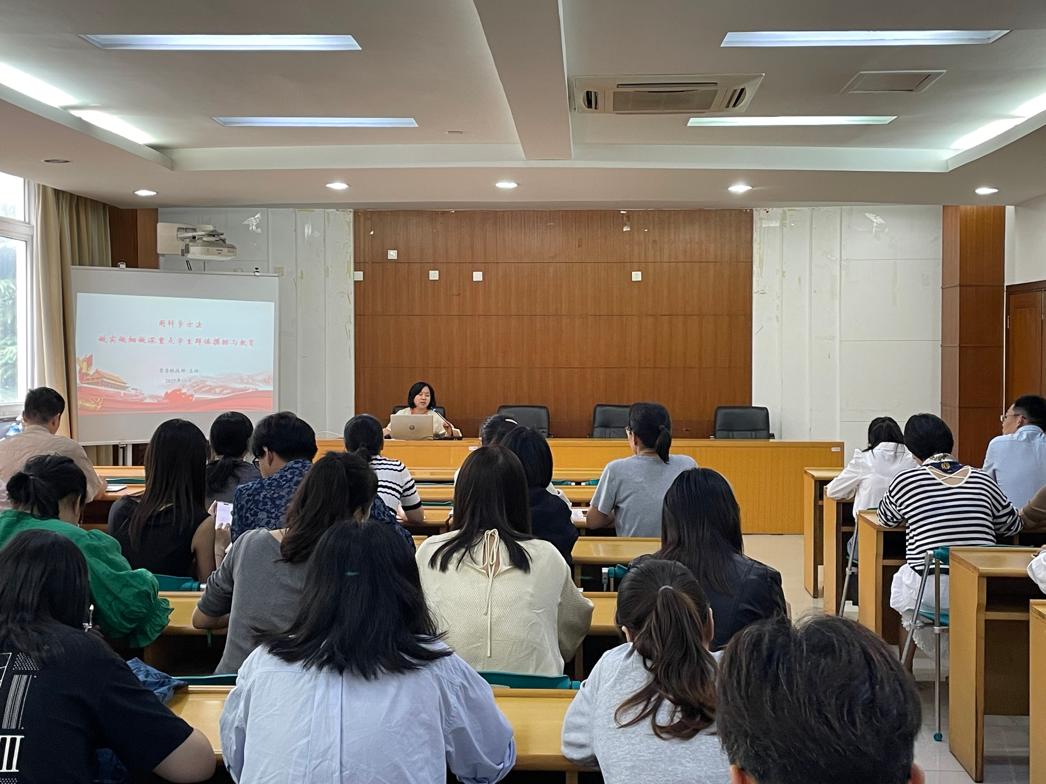 王玲结合当前形势与典型案例,从非法教向校园渗透的背景、国家相关法律法规与政策文件、辅导员(班主任)开展抵渗具体工作的实践要求三个方面作了系统解读。