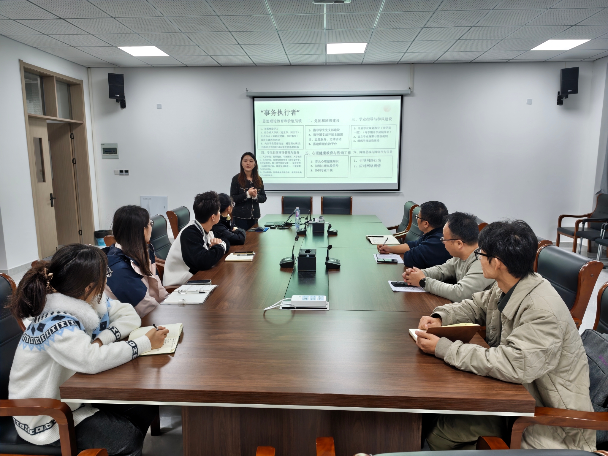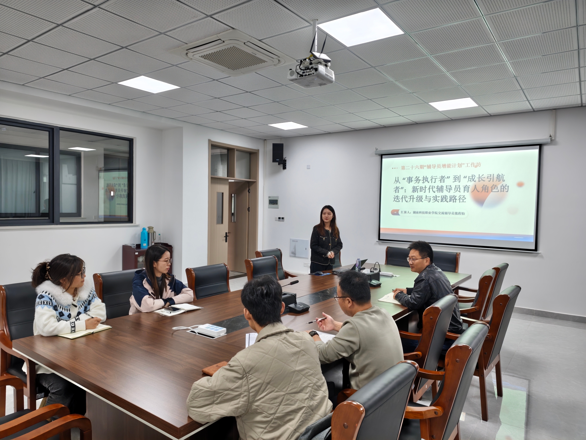 为深入贯彻落实《普通高等学校辅导员队伍建设规定》要求,推动辅导员队伍专业化职业化发展,11月14日,“逐梦启航”辅导员工作室请到湖南科技职业学院辅导员熊程怡,以《从事务执行者到成长引航者:新时代辅导员育人角色的迭代升级与实践路径》为题,作辅导员育人工作交流分享。学工处副处长王奇、电气工程学院党总支副书记沈俊、经济管理学院党总支副书记甘迎春及溧阳基地辅导员参加。