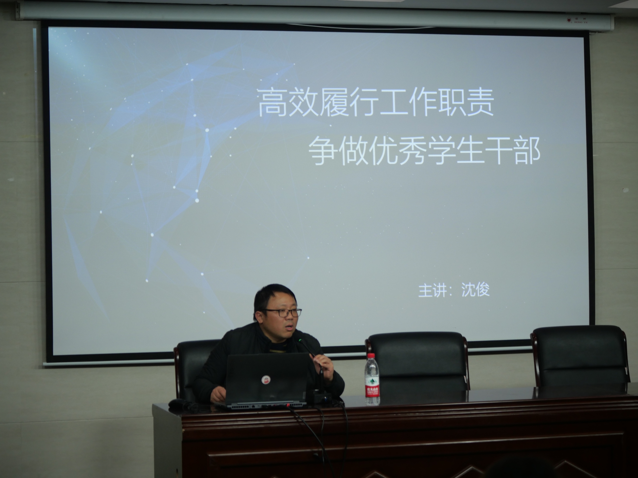 开班仪式后,沈俊以《高效履行工作职责 争做优秀学生干部》为题讲授第一课。他勉励学员们要将“愿干事”的热情转化为“能干事”的能力,做到“勤听善思、勇于实践、互助共进”,在协作与实践中明确方向,将个人成长融入国家发展大局。