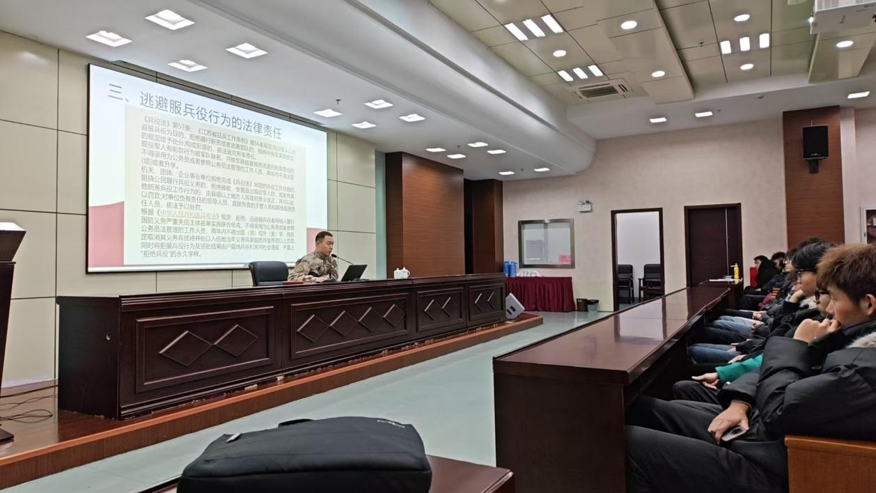 为强化高校学生国防观念,切实做好2026年春季征兵工作,12月24日下午,常州市钟楼区人武部李波参谋、盛杰参谋走进我校,开展征兵宣传进校园大学生应征入伍政策宣讲会。