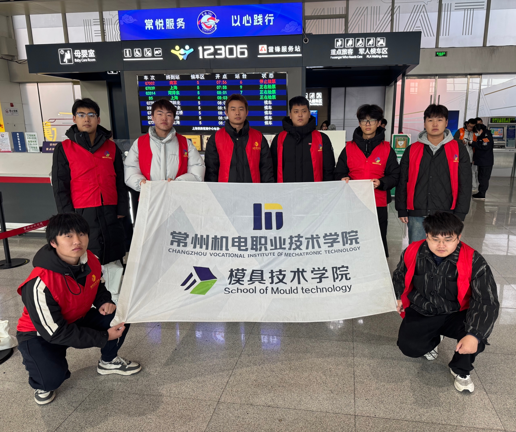 近年来,模具技术学院打造“常馨驿”志愿服务品牌,团队坚持利用周末及重大节假日,在常州铁路枢纽开展常态化服务,年均提供超千小时志愿服务,已成为车站一道温暖的风景线。