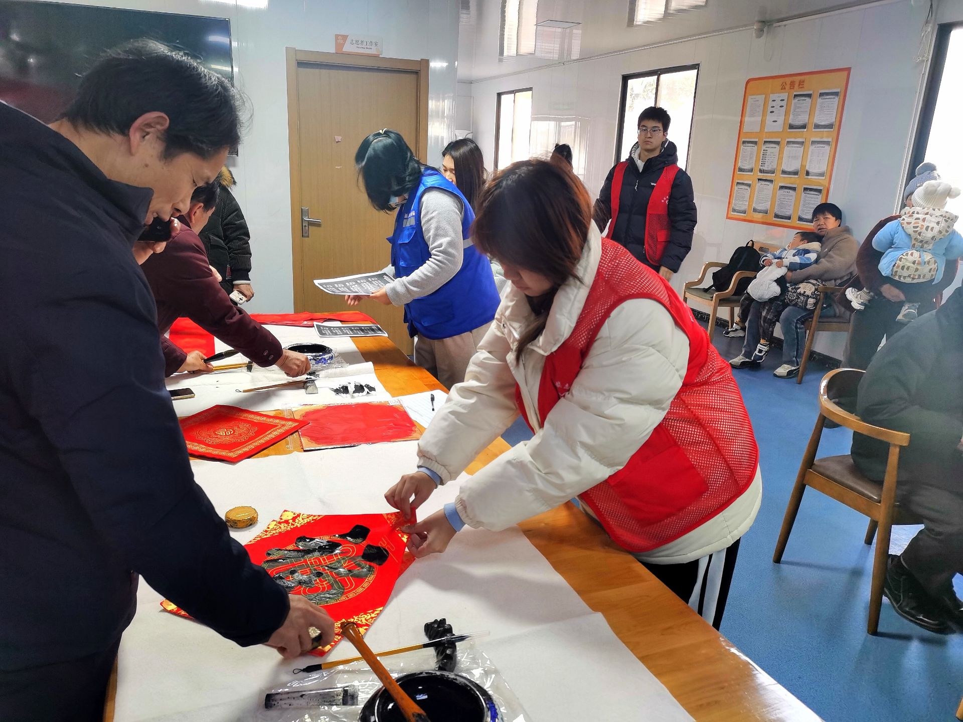 在学府社区,志愿者们组织开展“青春团圆年夜饭”主题活动,活动有序开展、氛围浓厚。志愿者现场书写春联,为居民送上新春祝福;搭建互动舞台,进行歌舞表演并与居民互动;与居民共同包馄饨、布置活动现场,营造团圆祥和的节日氛围。