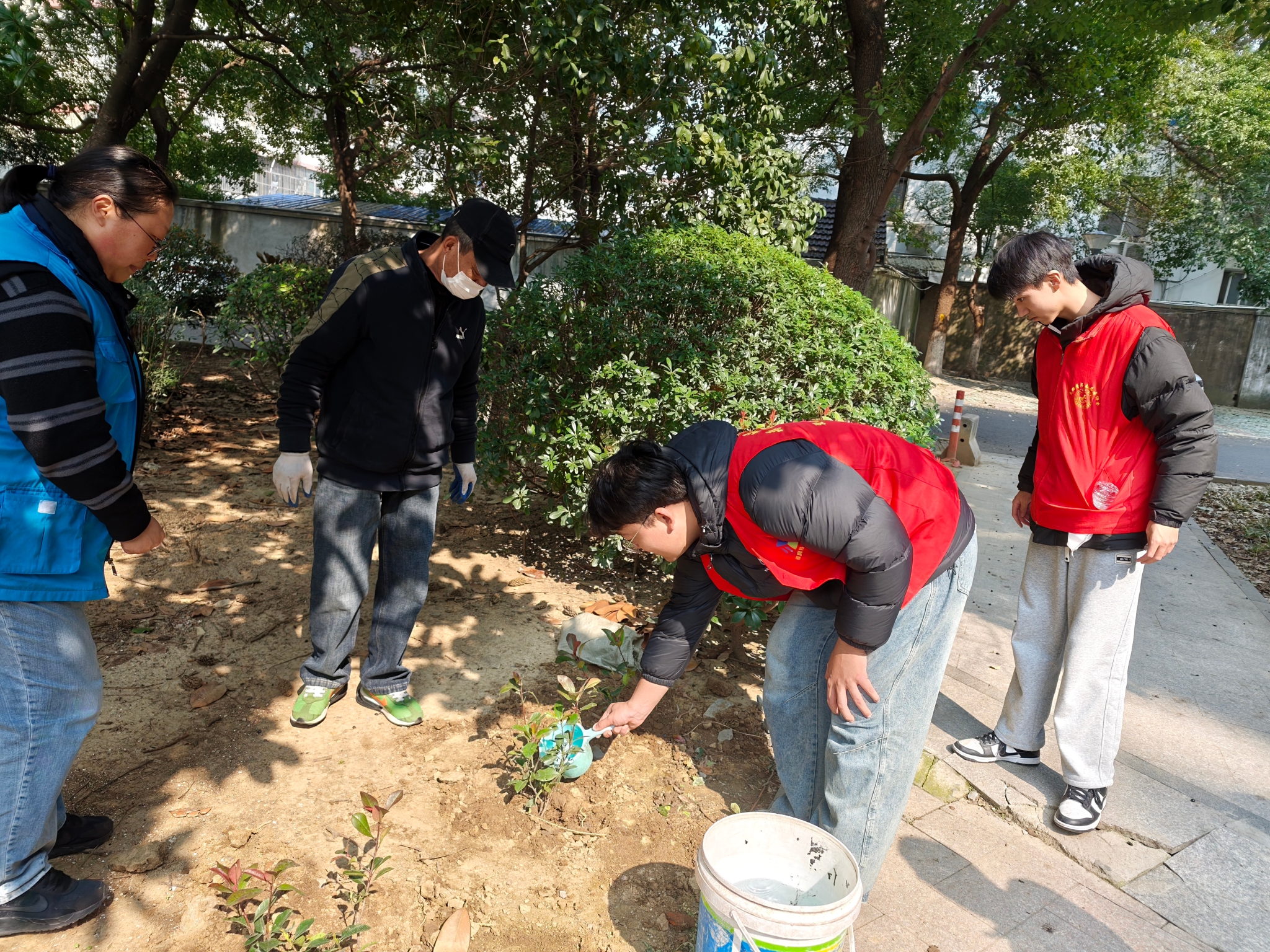 志愿者们分工协作,挥锹铲土、扶苗填坑、提水浇灌,认真完成每一道工序。两个小时的劳动中,大家用汗水浇灌绿色,以行动践行责任。一株株新栽的树苗在社区绿地中扎根,为春日增添勃勃生机。
