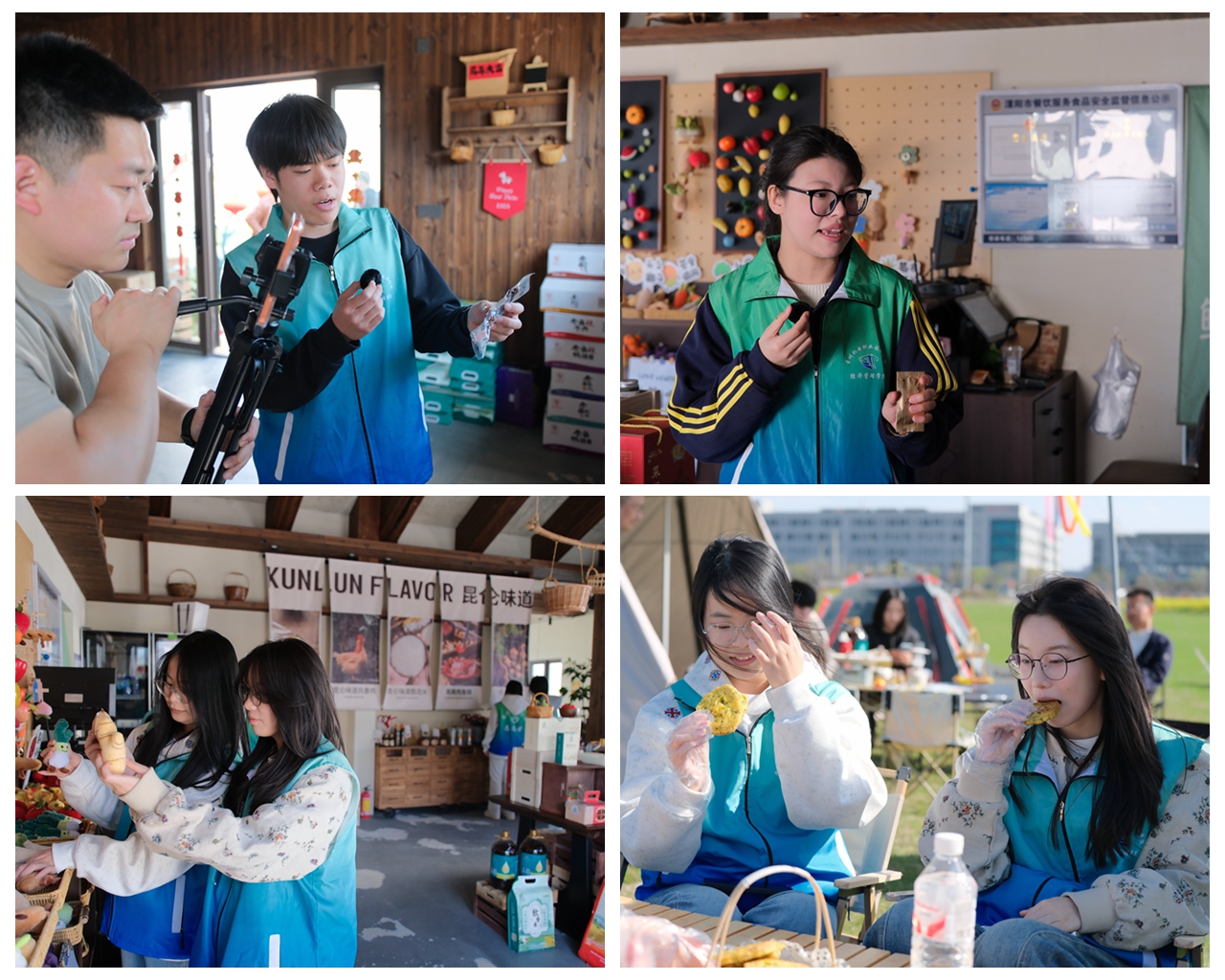 在昆仑街道工作人员的帮助下,志愿者们将直播间搭建在春日的方里水街及油菜花田,将课堂所学的直播技巧与实践相结合,绘声绘色地向观众展示本地特色农产品,用年轻化的语言讲述产品背后的故事,让“昆仑味道”变得生动鲜活。