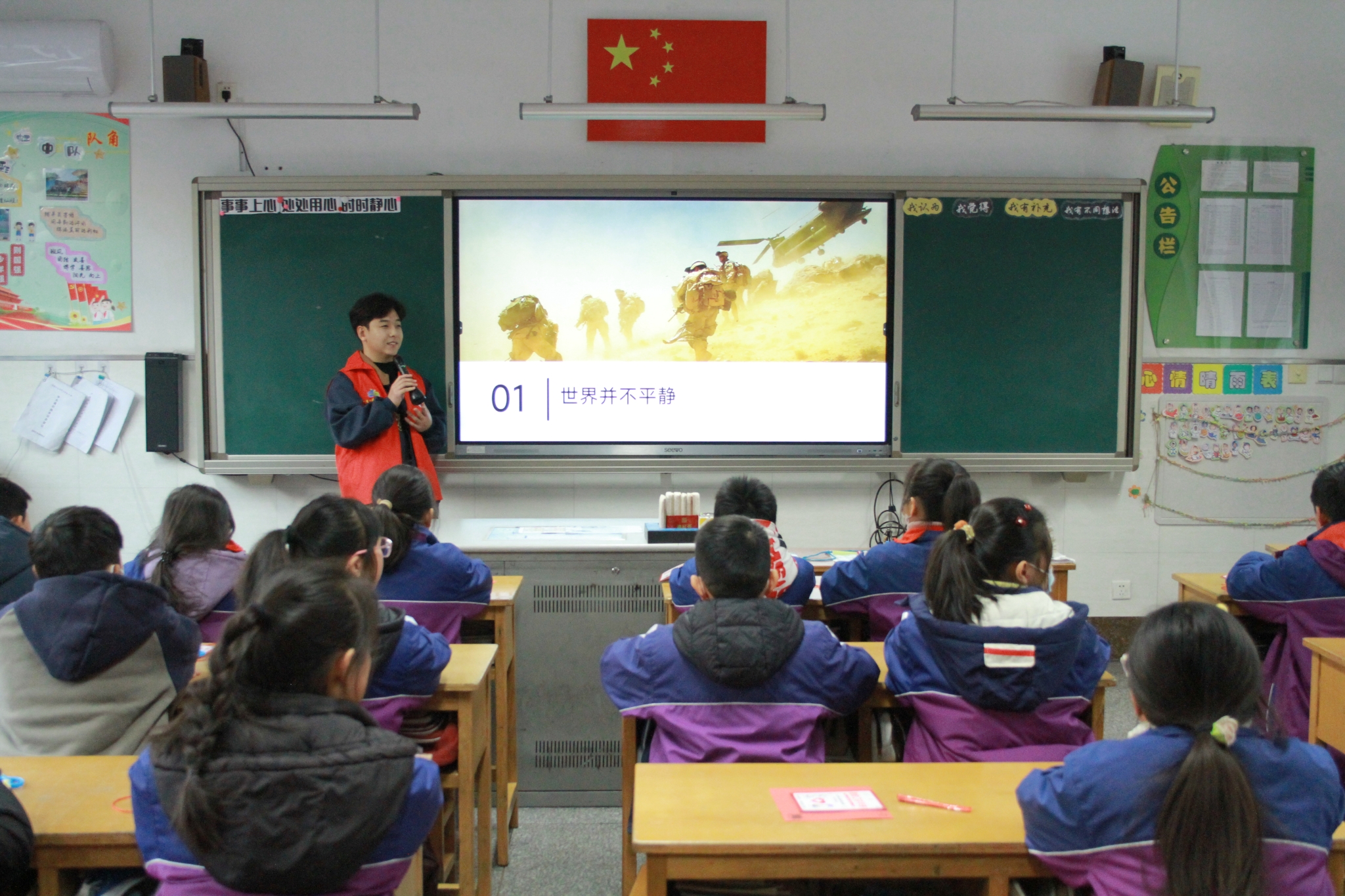 志愿服务队成员朱传琦带来国家安全与未成年人保护专题宣讲,以法治宣讲厚植家国情怀,用志愿行动传递法治温度。他通过趣味问答的互动形式,普及《反分裂国家法》《中华人民共和国反间谍法》的核心内容,阐释一个中国原则与“一国两制”的深刻内涵,在孩子们心中种下爱国爱党的种子,厚植家国情怀。针对未成年人的成长特点,他结合真实案例,深入浅出解读了《中华人民共和国未成年人保护法》《中华人民共和国家庭教育促进法》《反家庭暴力法》中的关键条款,引导孩子们学会辨别危险、勇敢拿起法律武器保护自身合法权益,切实增强自我保护能力。