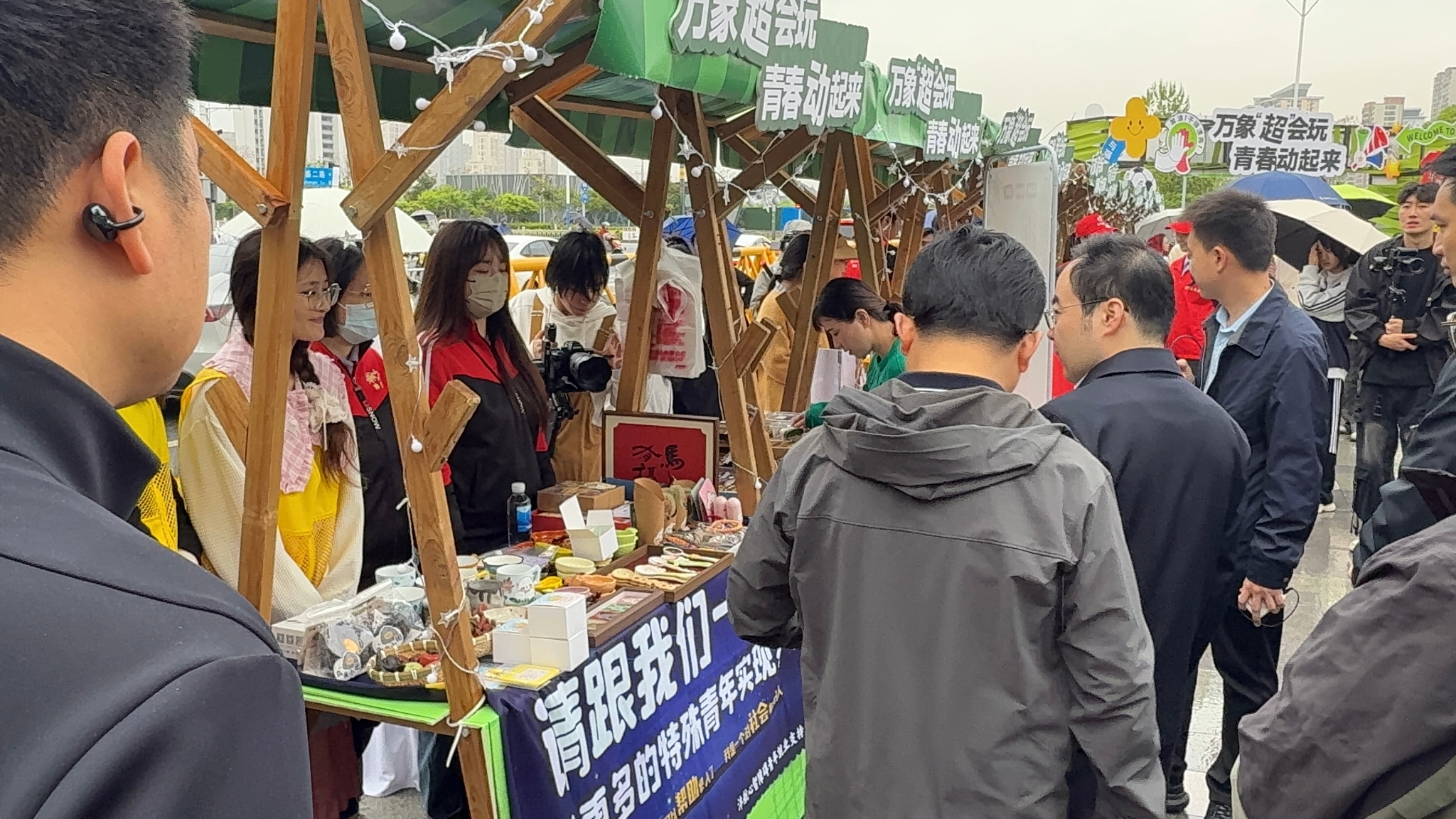 当天,“苏超”赛事开幕,赛事直播、主题市集等多项活动同步展开,吸引众多市民前来打卡体验。志愿者们迅速融入现场,认真投入志愿服务,细致介绍每件手工艺品的创作背景,温情讲述“星星人”的故事,用真情服务架起公众与特殊群体的桥梁,让关爱在热闹商圈里悄然流动。