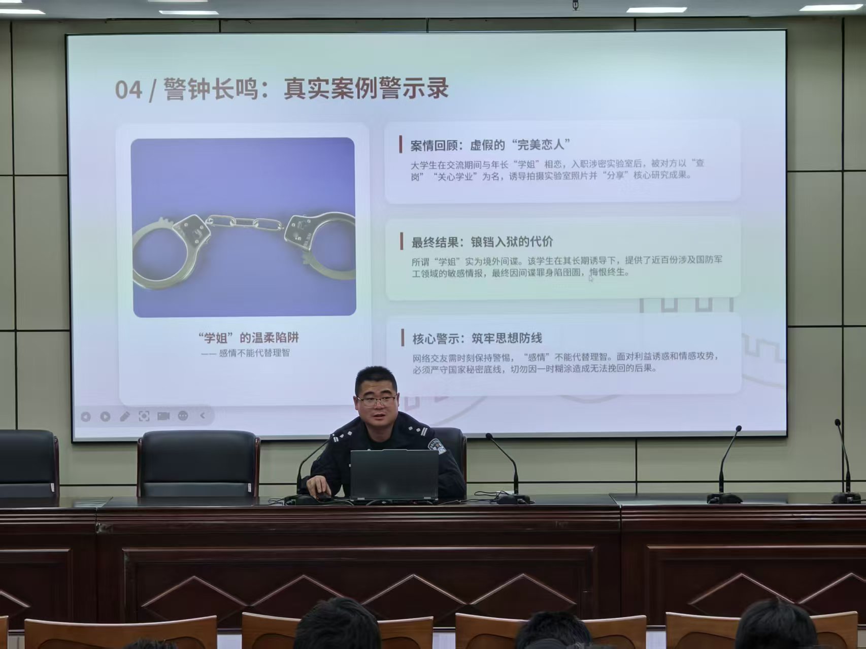 张俊围绕网络安全、电信诈骗及个人信息保护等内容展开讲解,结合高校真实案例对总体国家安全观进行了具体解读。