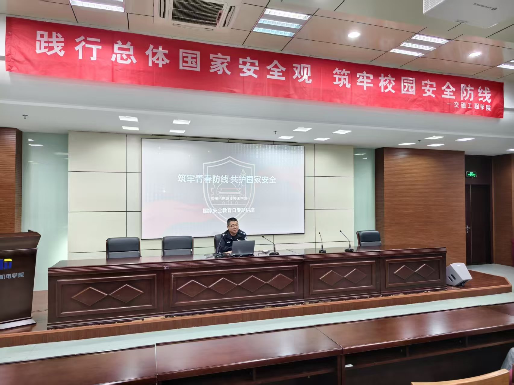 4月15日,交通工程学院在图书馆紫厅举办“践行总体国家安全观,筑牢校园安全防线”主题团日活动。活动特邀科教城派出所张俊警官作专题讲座。