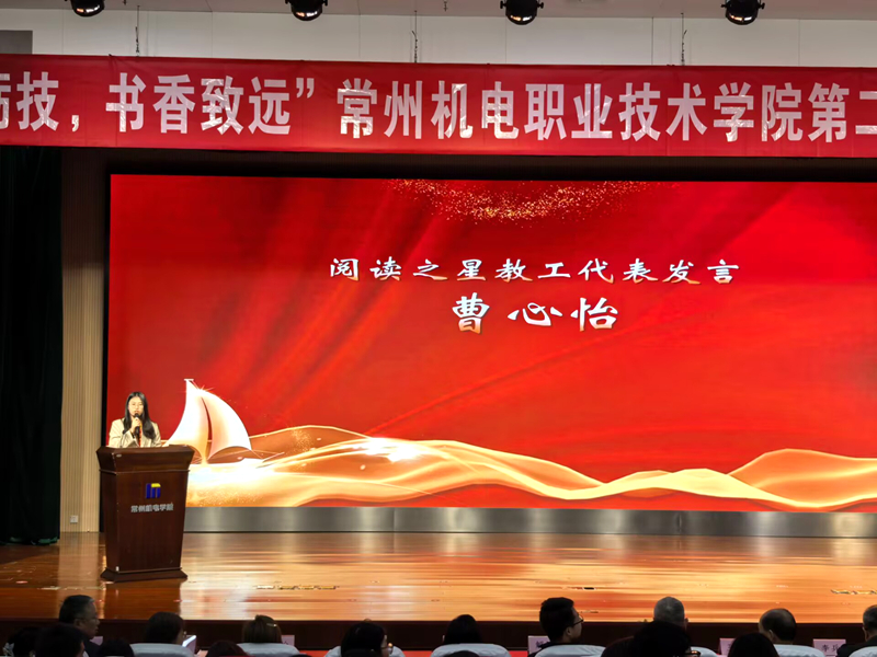 阅读之星代表机电2438班学生郭洪瑞、机械工程学院曹心怡老师分别分享阅读心得。他们表示,读书是与自我对话、与世界接轨的过程,并鼓励同学们在阅读中提升自我。