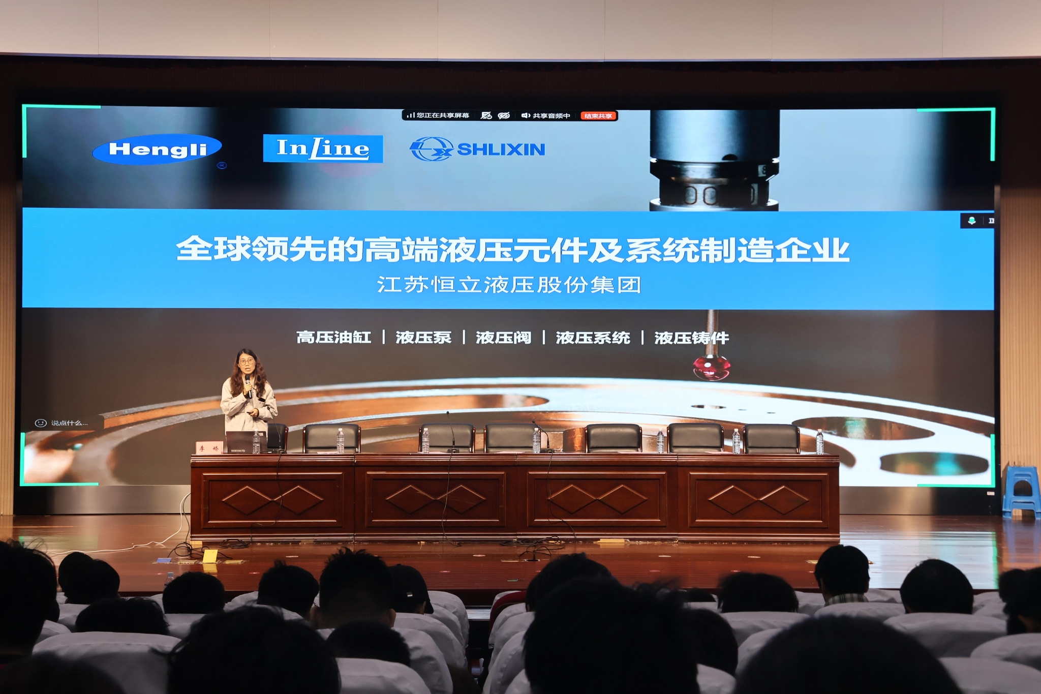 在企业宣讲环节,恒立集团旗下恒立液压、恒立精密、恒立科技、恒立气动四家分公司代表介绍了各自的发展历程、核心业务、人才需求、培养体系、发展通道,以及实习岗位、薪资福利、晋升路径等内容,并与在场师生交流。部分学生在交流后现场投递简历。双方就后续面试、实习等环节进行了沟通。