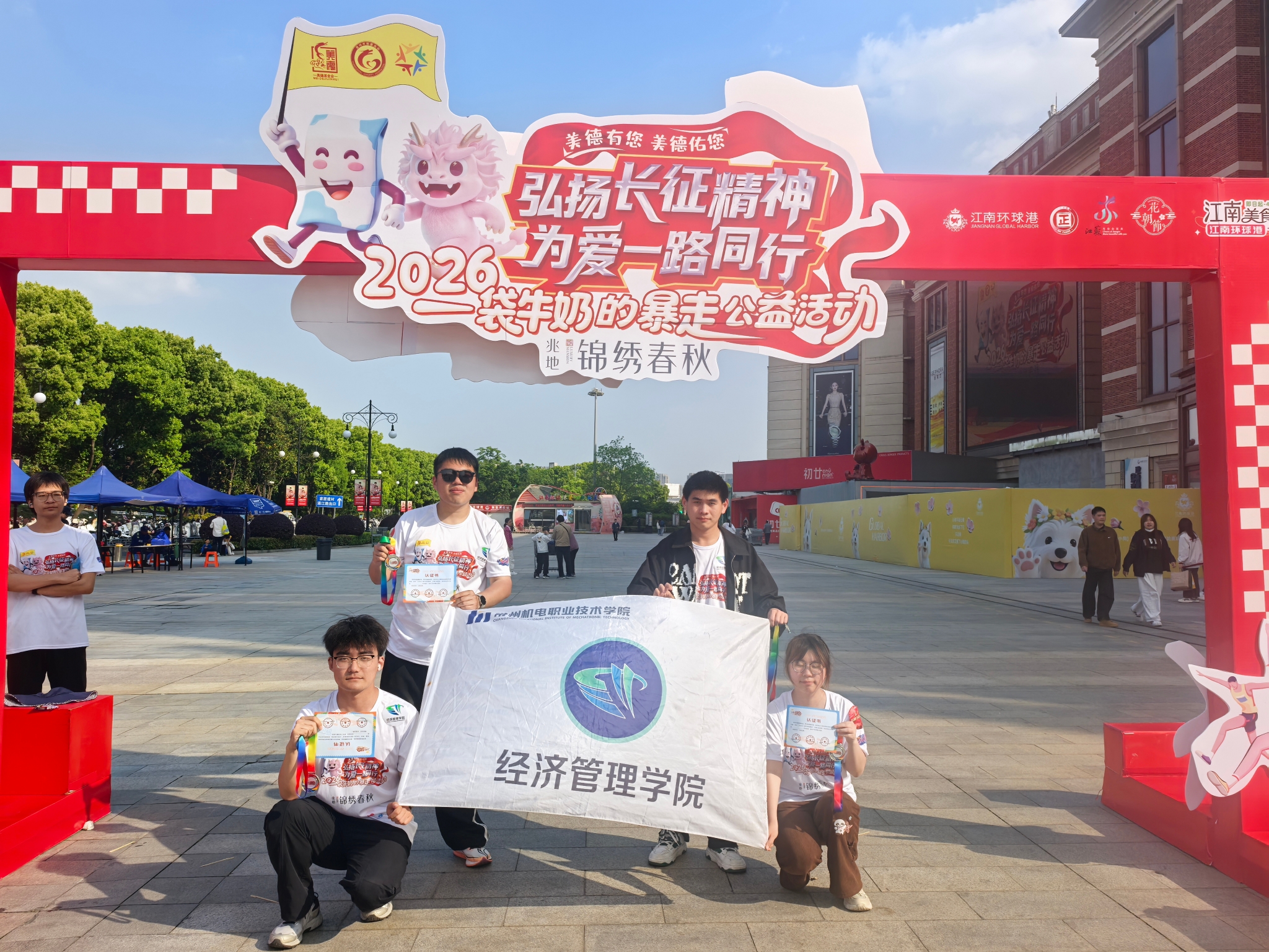 “一袋牛奶的暴走”作为常州品牌公益活动,该活动至今已成功举办第十三届,此次活动共吸引了一万余名市民报名参与。活动当天,党员和入党积极分子身着统一服装,沿指定路线徒步,以公益行走方式为困难儿童募集善款。经济管理学院分团委组织青年团员志愿者在路线沿途设置服务站点,提供饮用水、急救药品、路线指引等服务。