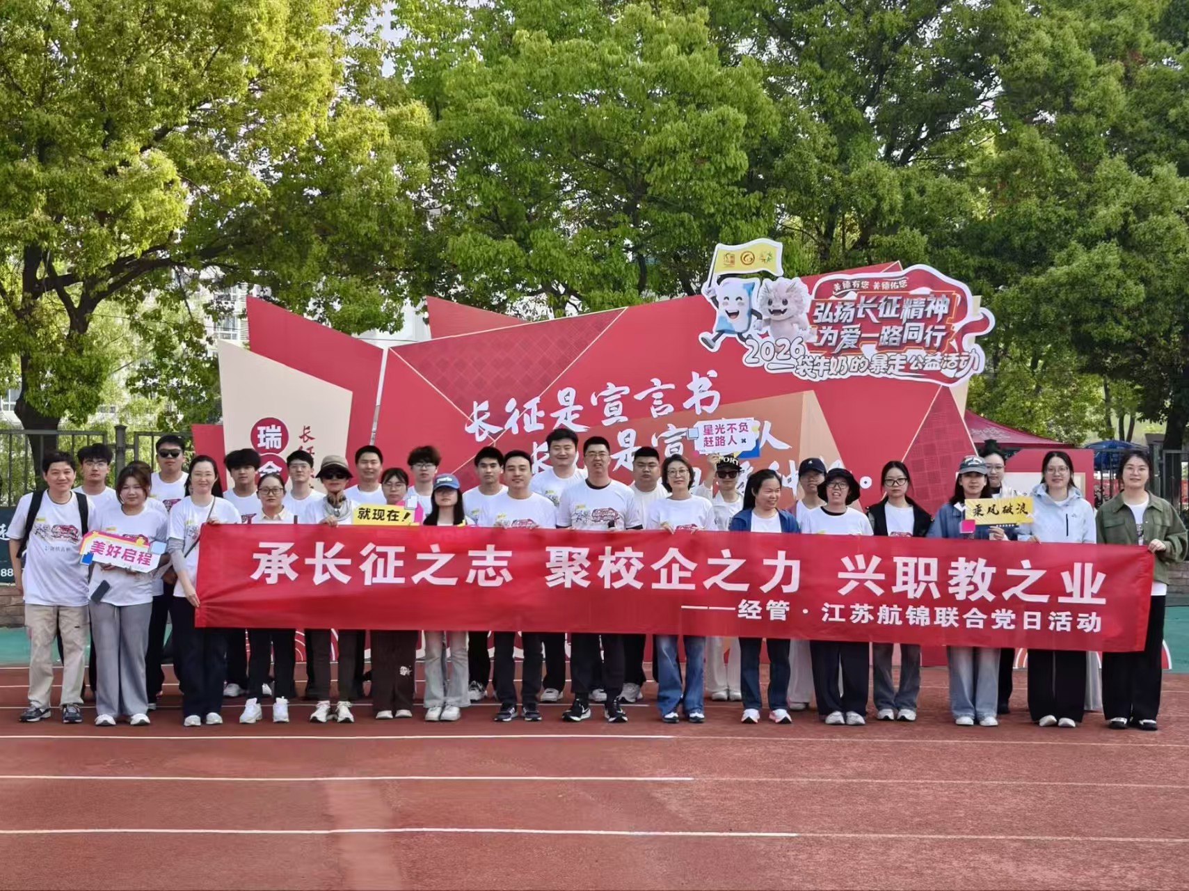 4月25日,经济管理学院第一党支部与江苏航锦货运党支部联合开展党日活动,组织党员、入党积极分子参与“一袋牛奶的暴走”公益活动,同时组织青年团员在溧阳站提供志愿服务。